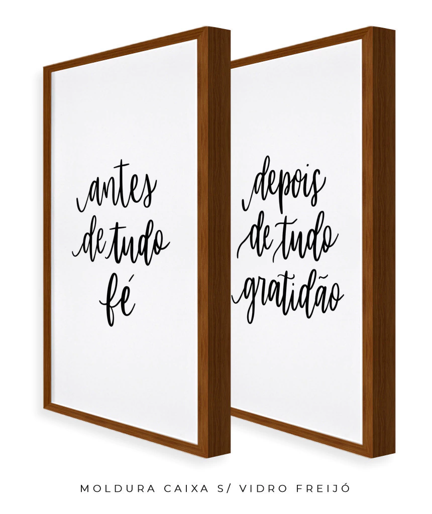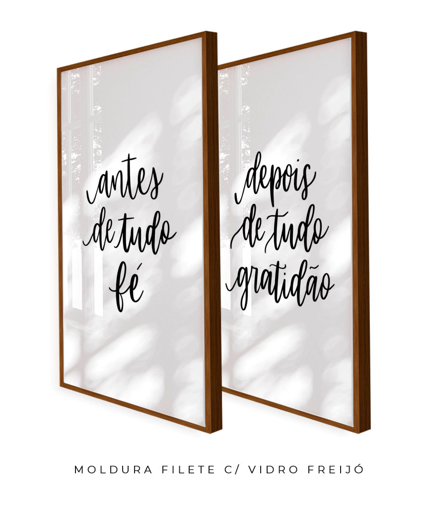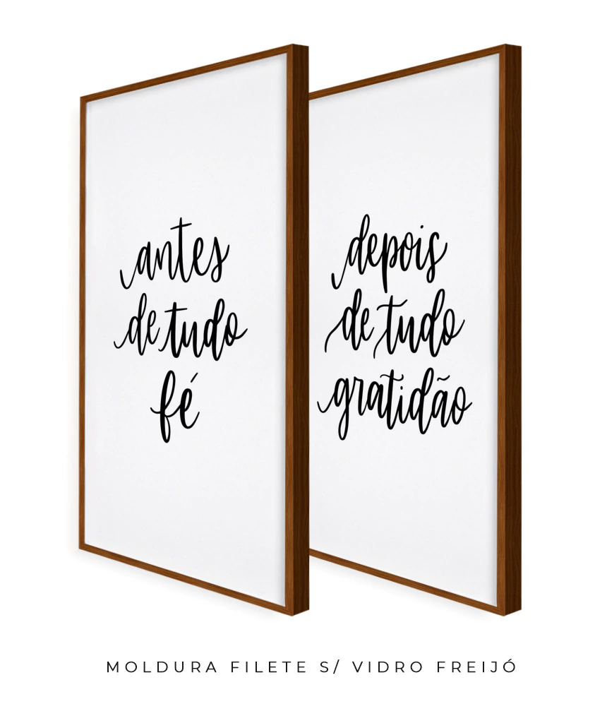 Conjunto com 2 Quadros Decorativos - Antes de Tudo Fé + Depois de Tudo Gratidão | Arte Autoral Por Rachel Moya | Art Studio®