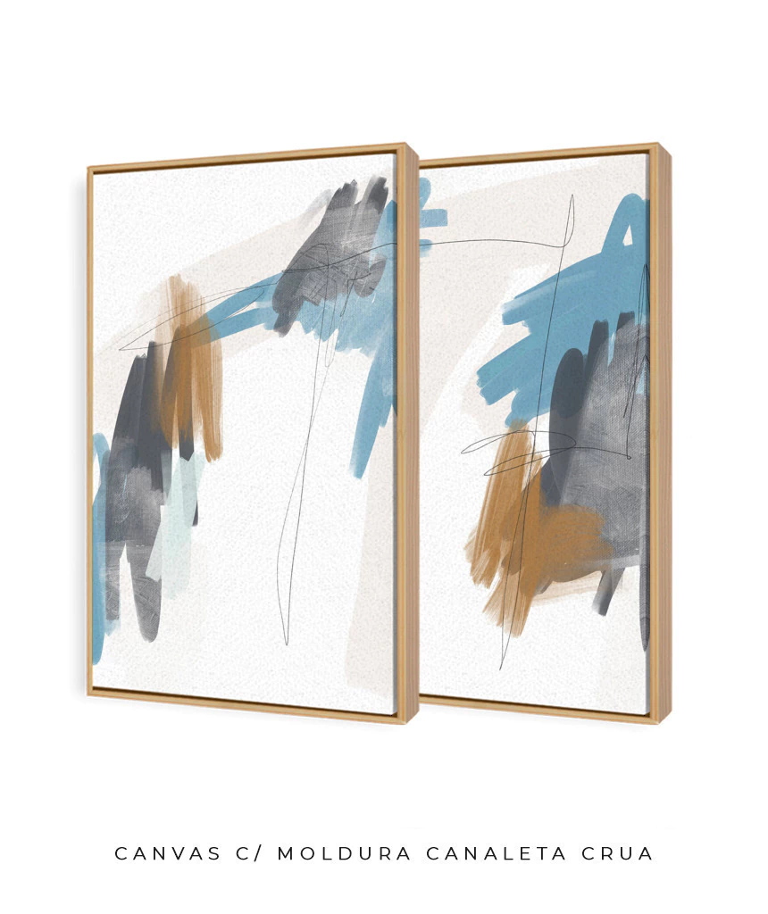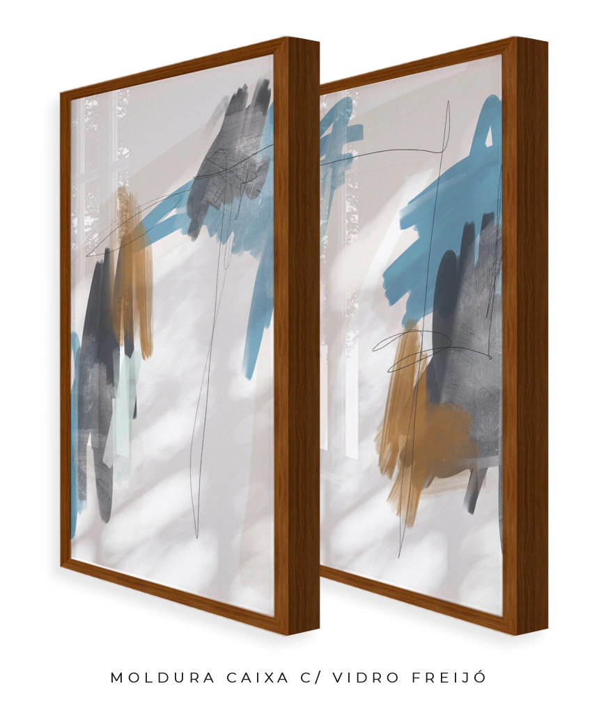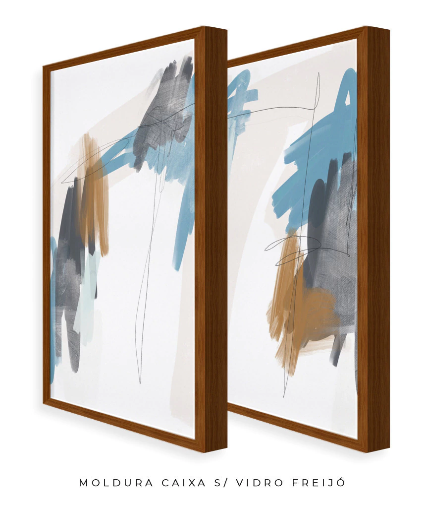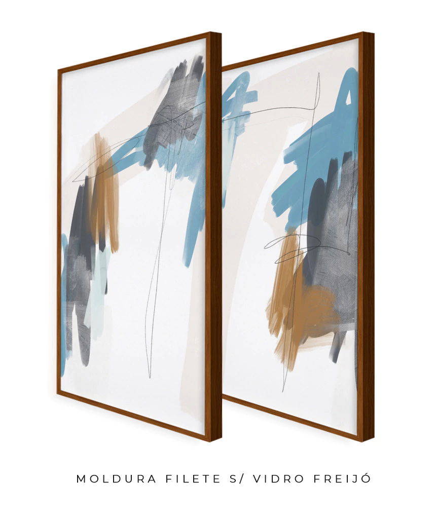 Conjunto com 2 Quadros Decorativos - Blue and Brown Strokes N.01 + Blue and Brown Strokes N.02 | Arte Autoral Por Rachel Moya | Art Studio®