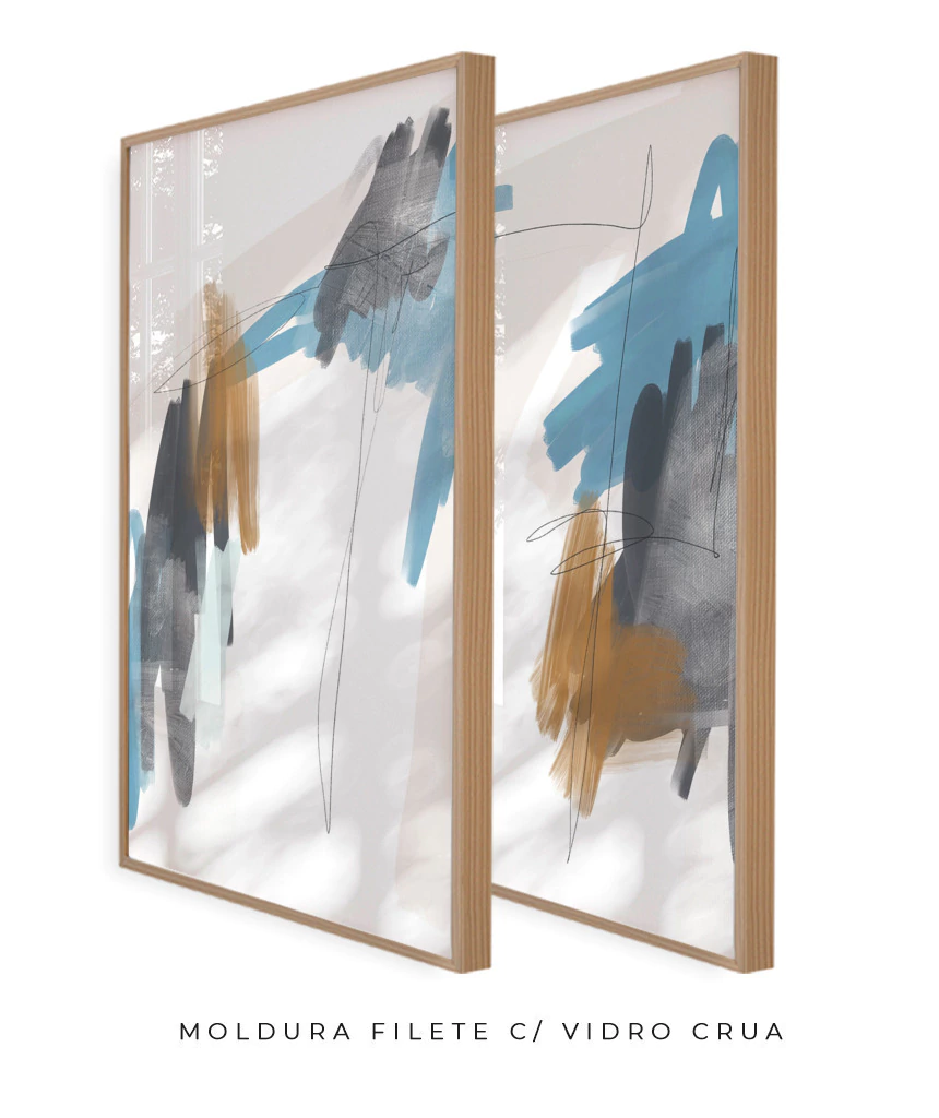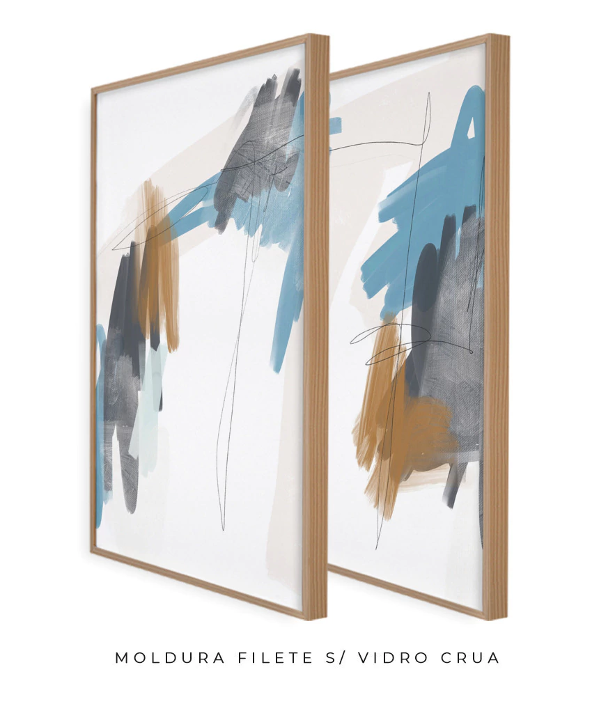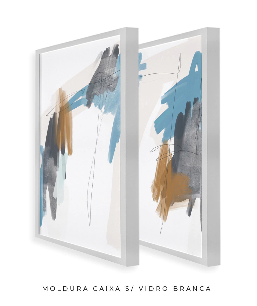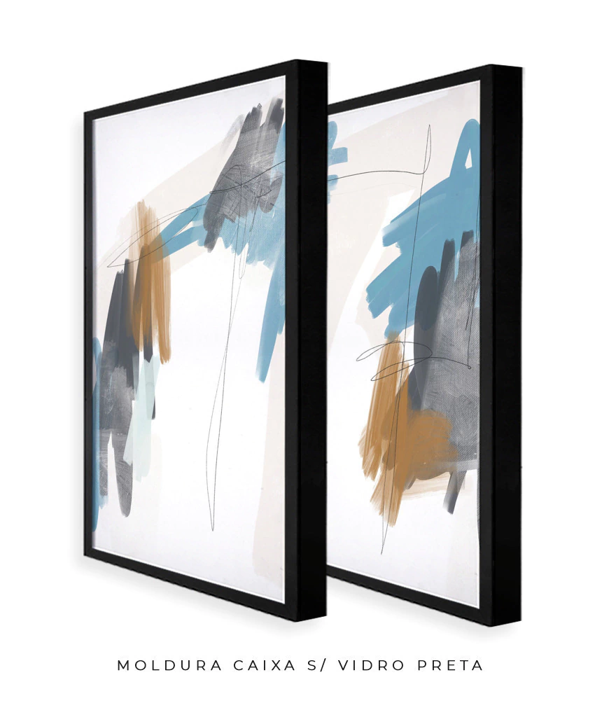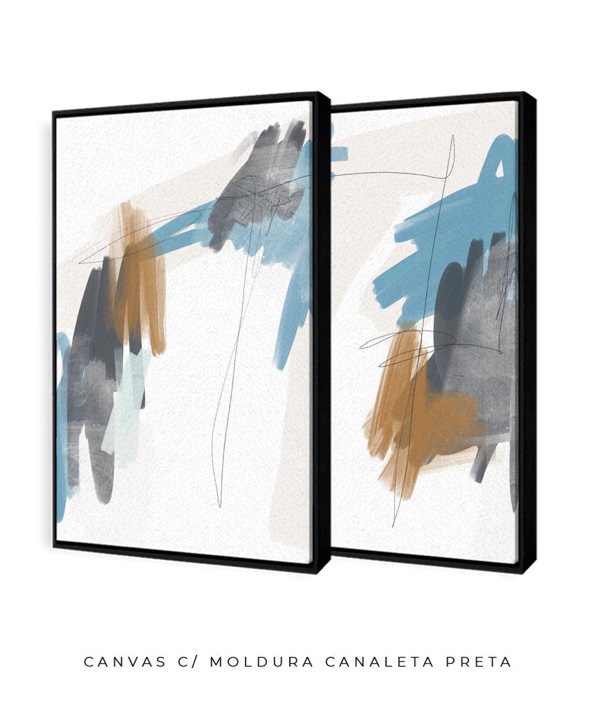 Conjunto com 2 Quadros Decorativos - Blue and Brown Strokes N.01 + Blue and Brown Strokes N.02 | Arte Autoral Por Rachel Moya | Art Studio®
