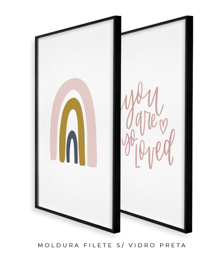 Conjunto com 2 Quadros Decorativos - Boho Rainbow + You Are So Loved Rosa | Arte Autoral Por Rachel Moya | Art Studio®