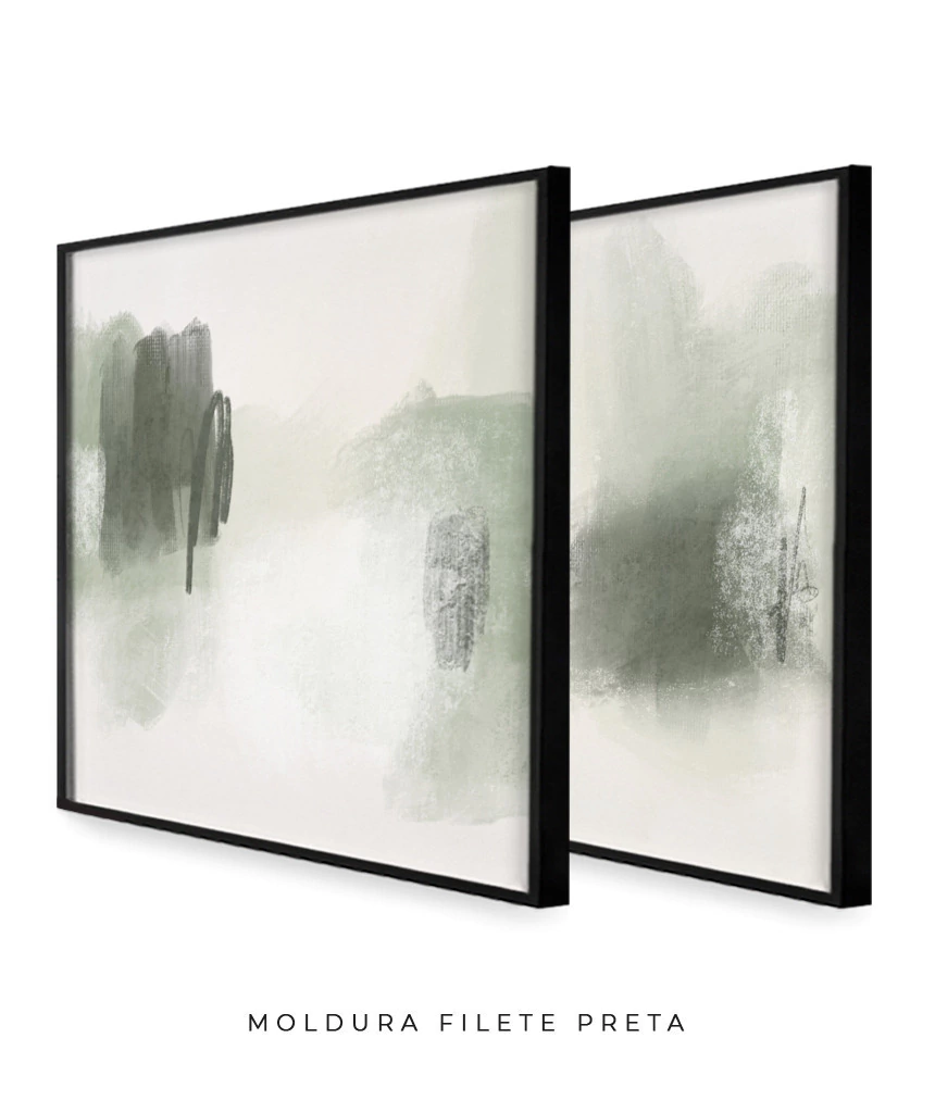 Conjunto com 2 Quadros Decorativos - Fading Green Light N.01 + Fading Green Light N.02 | Arte Autoral Por Rachel Moya | Art Studio®