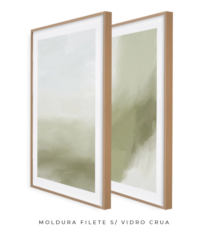 Conjunto com 2 Quadros Decorativos - Green Fields + Green Abstract | Arte Autoral Por Rachel Moya | Art Studio®