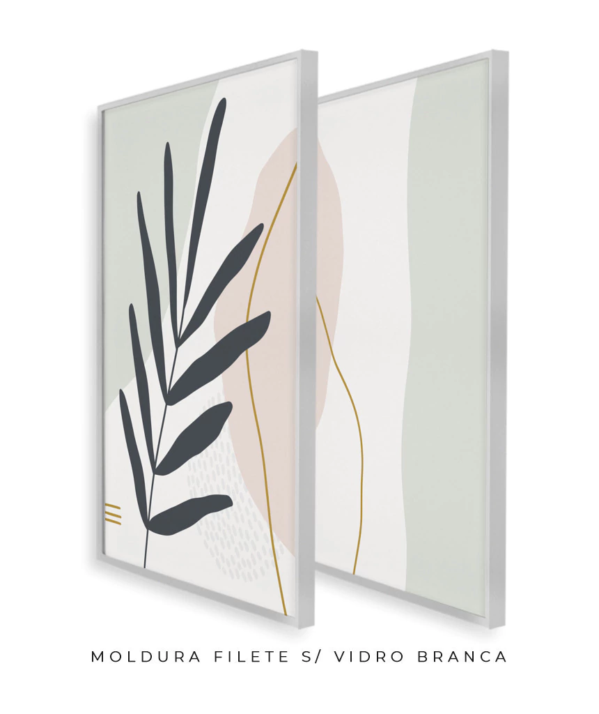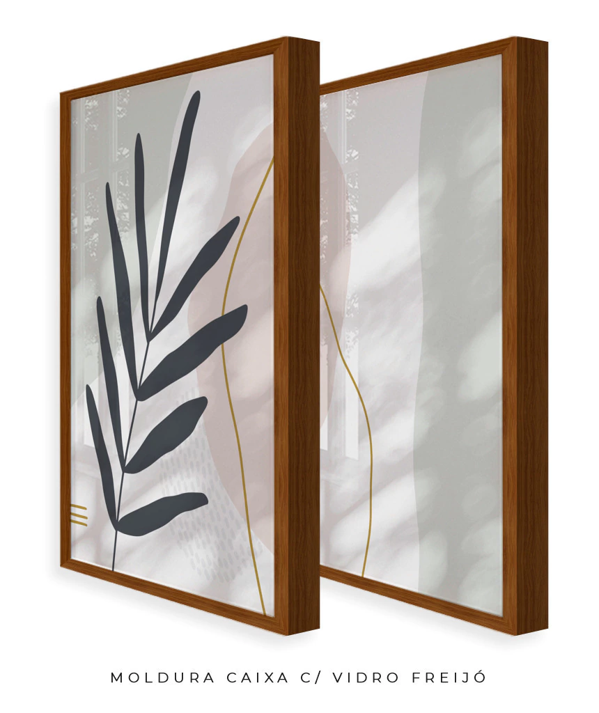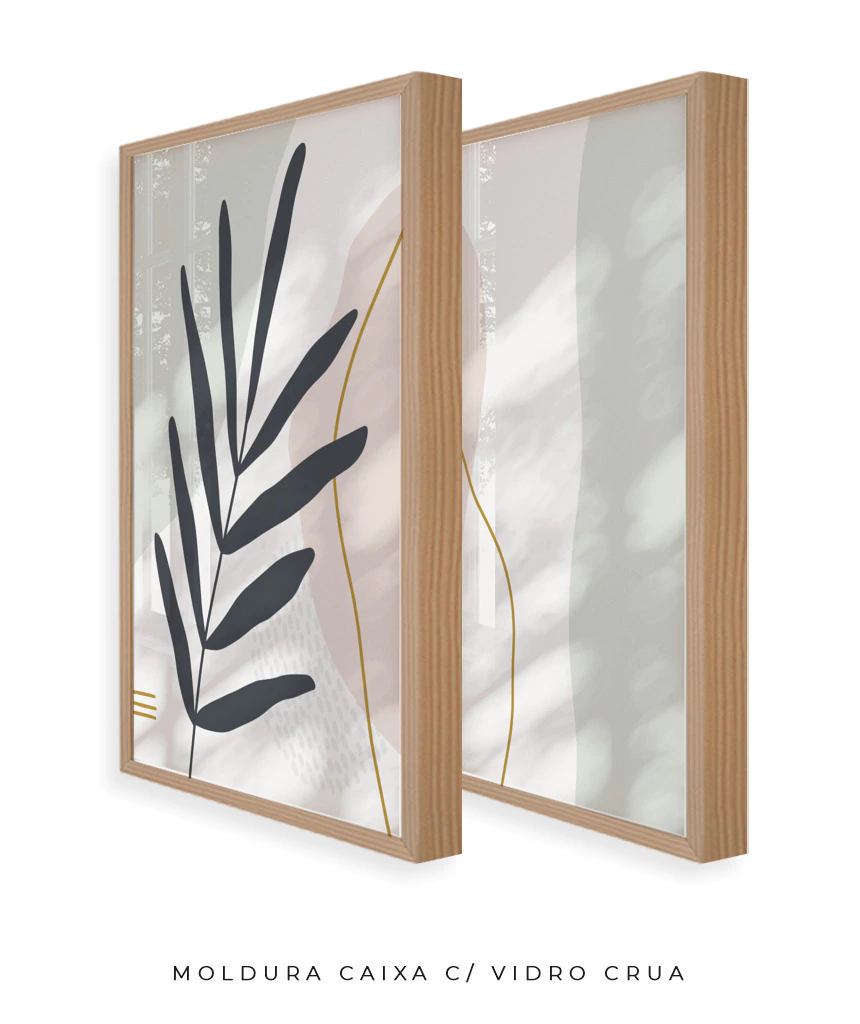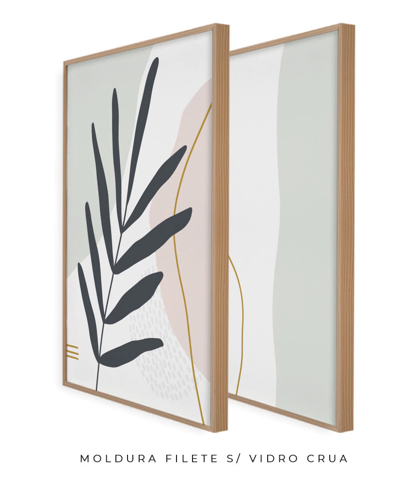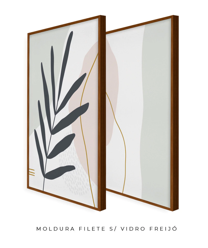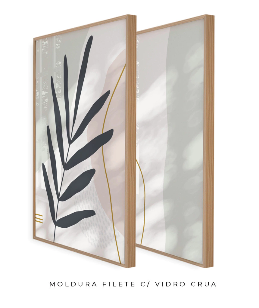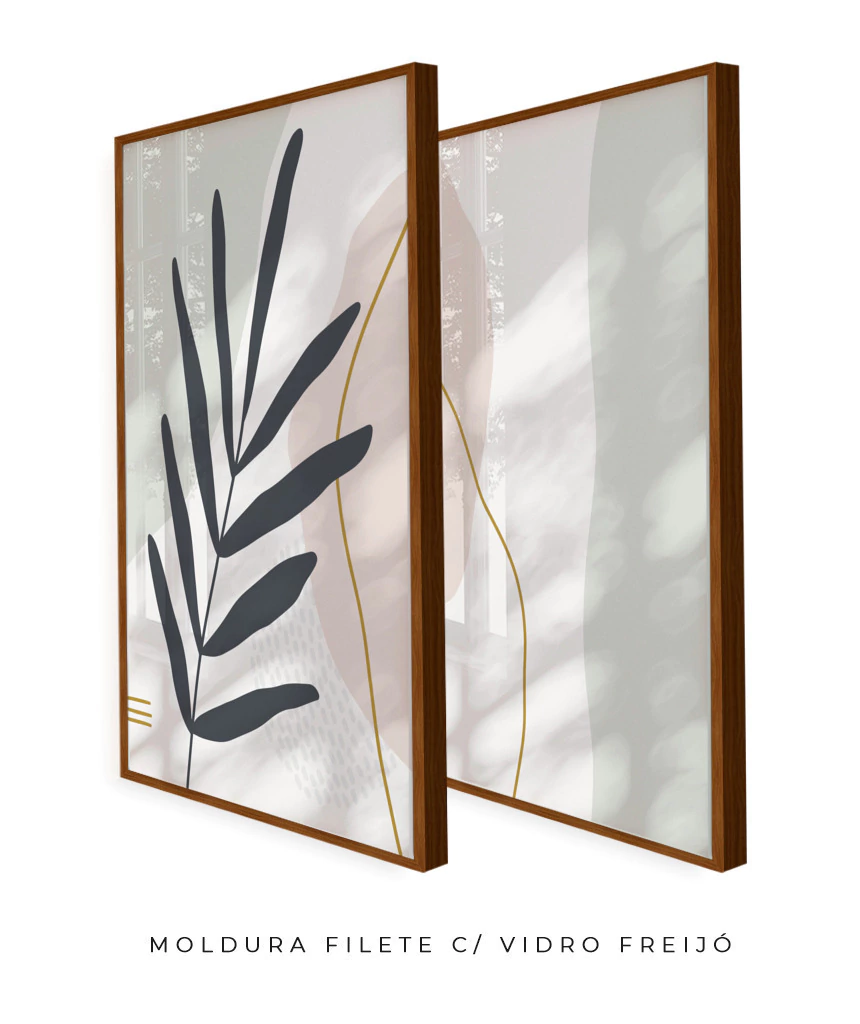 Conjunto com 2 Quadros Decorativos - Leaf Minimal Colagem + Nuances Minimal Nude | Arte Autoral Por Rachel Moya | Art Studio®