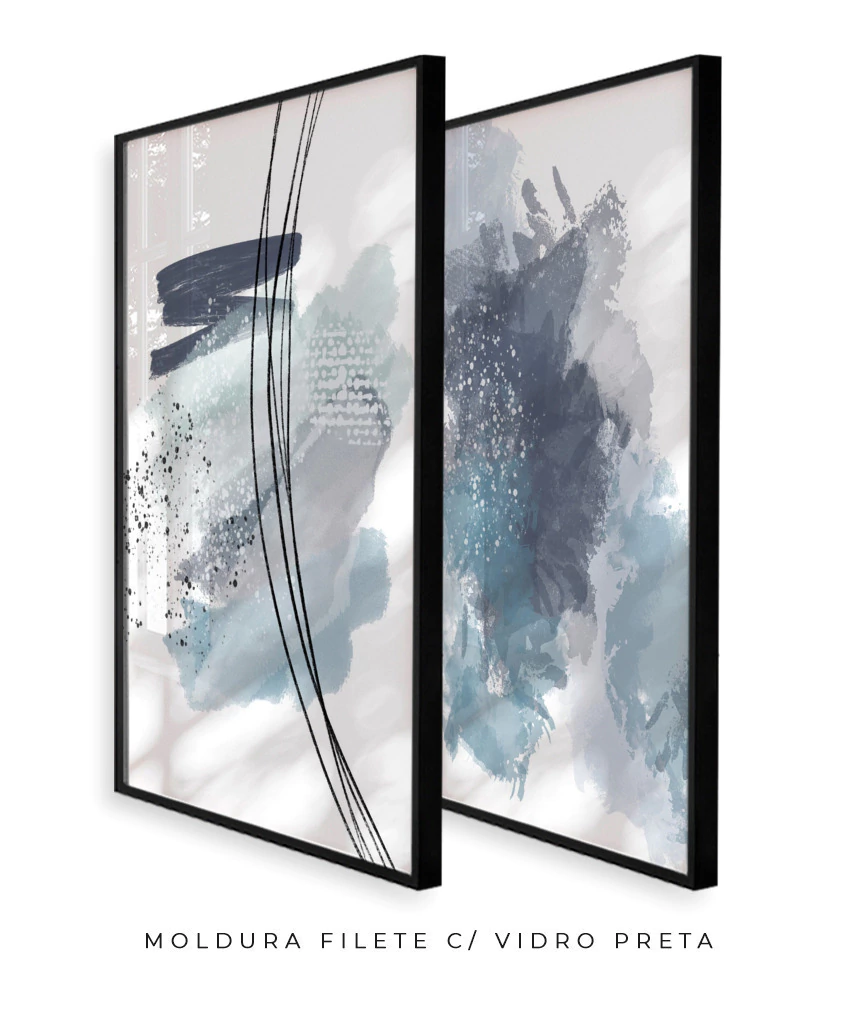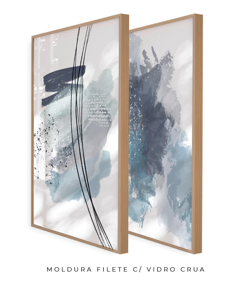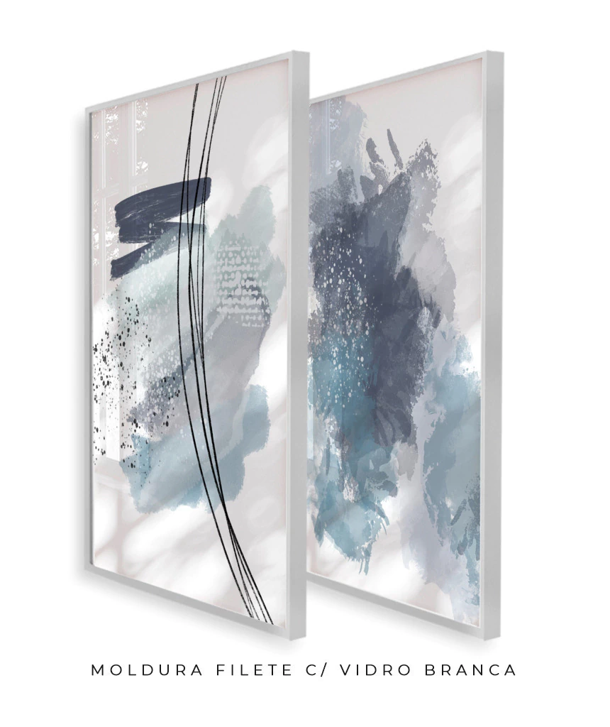 Conjunto com 2 Quadros Decorativos - Linhas Azul + Hopefulness | Arte Autoral Por Rachel Moya | Art Studio®