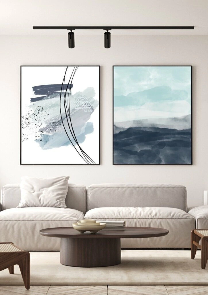Conjunto com 2 Quadros Decorativos - Linhas Azul + Ocean | Arte Autoral Por Rachel Moya | Art Studio®