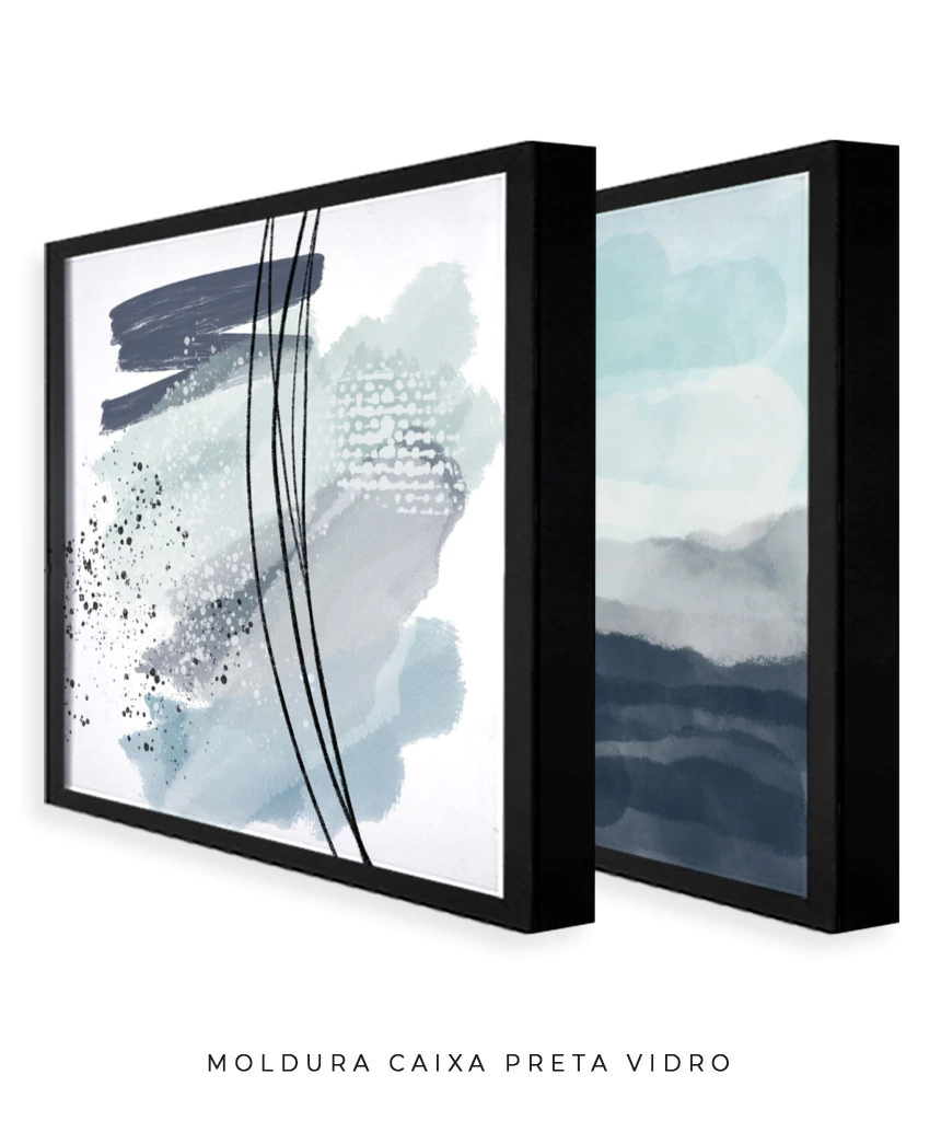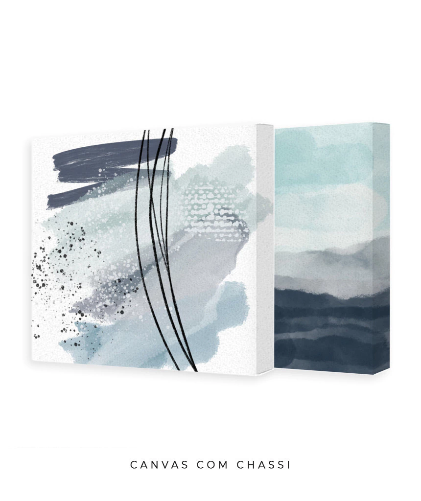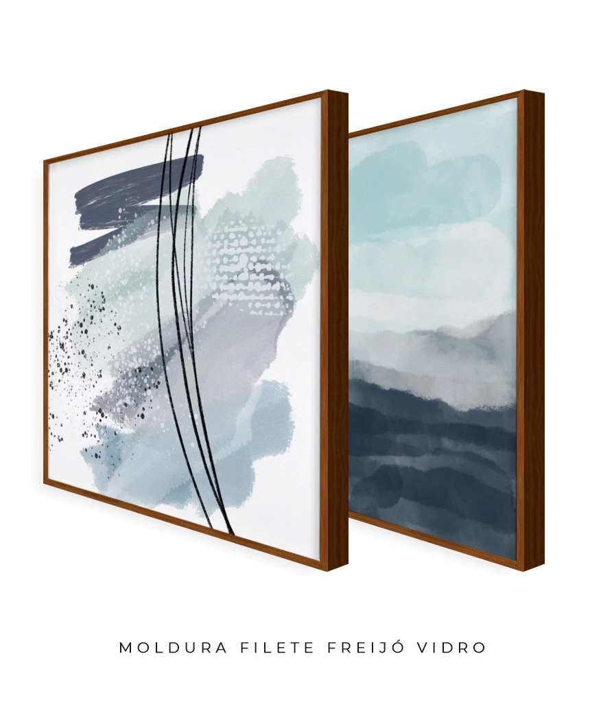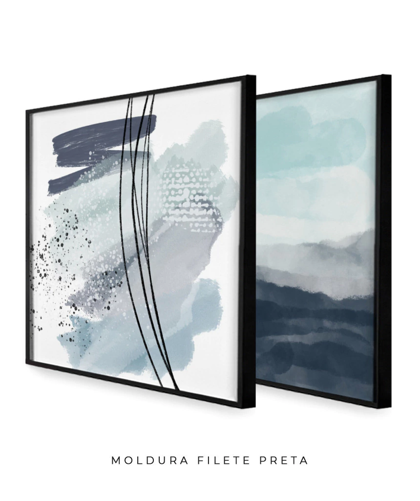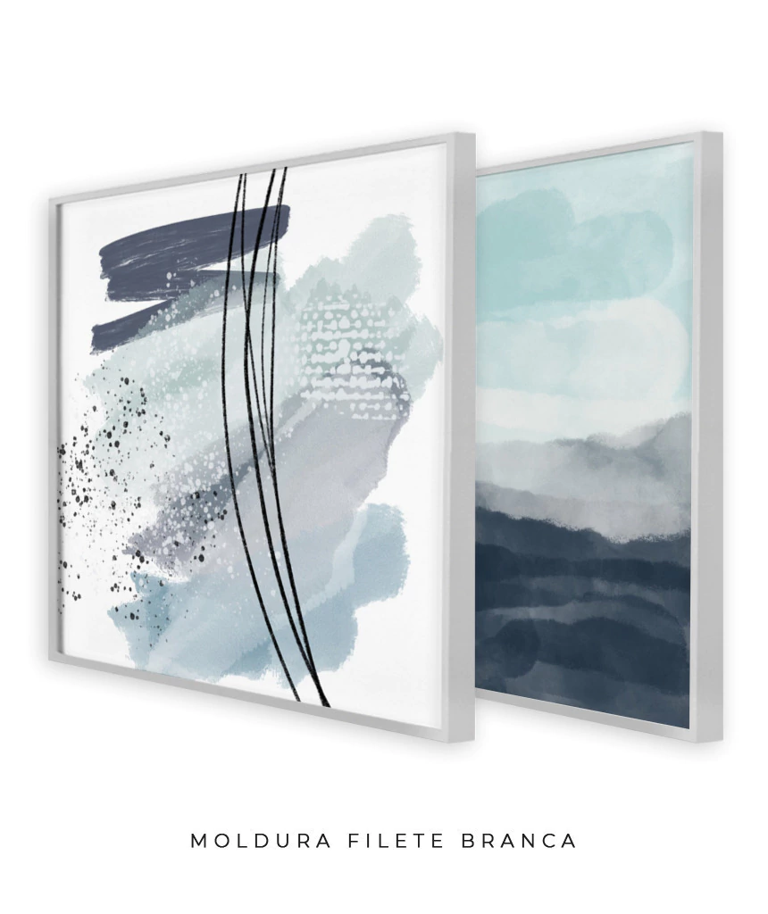 Conjunto com 2 Quadros Decorativos - Linhas Azul Quadrado e Ocean Quadrado | Arte Autoral Por Rachel Moya | Art Studio®