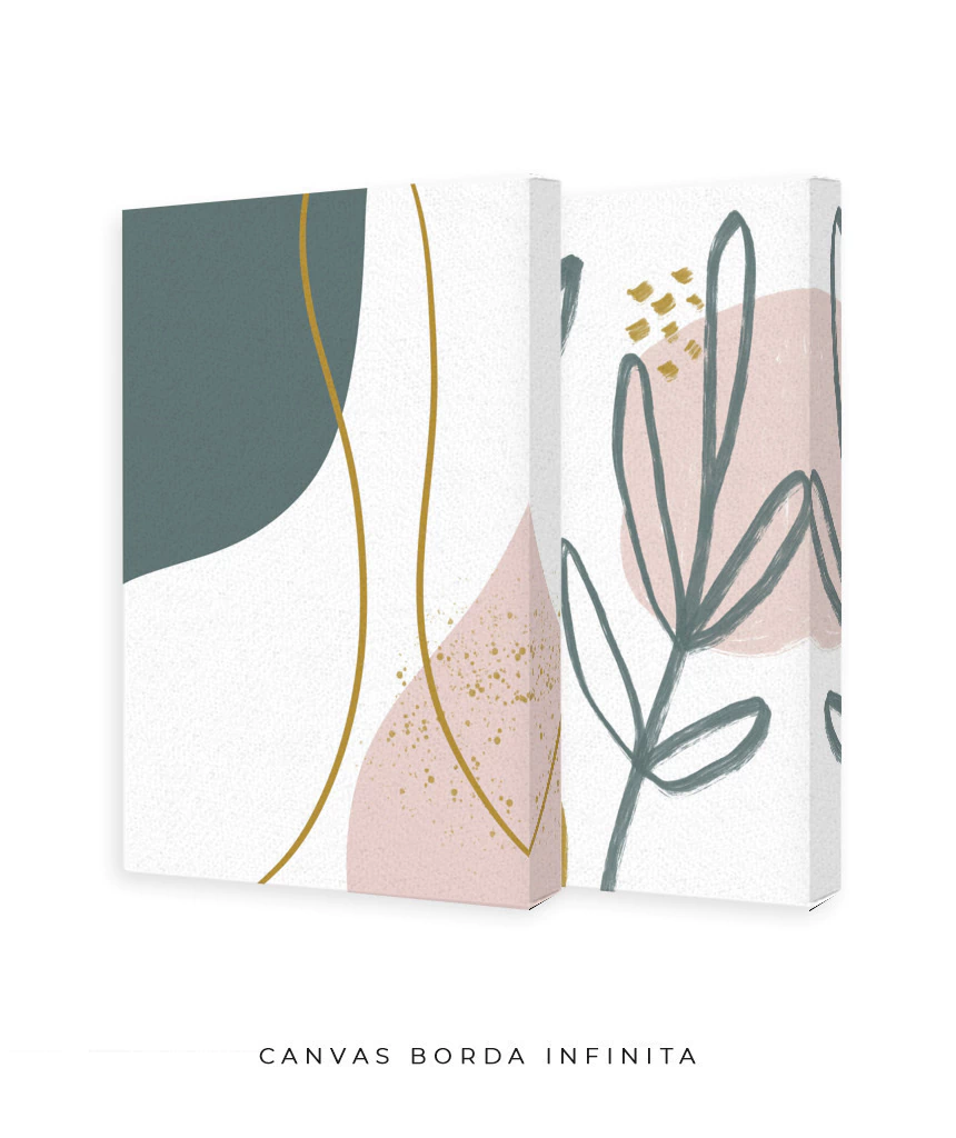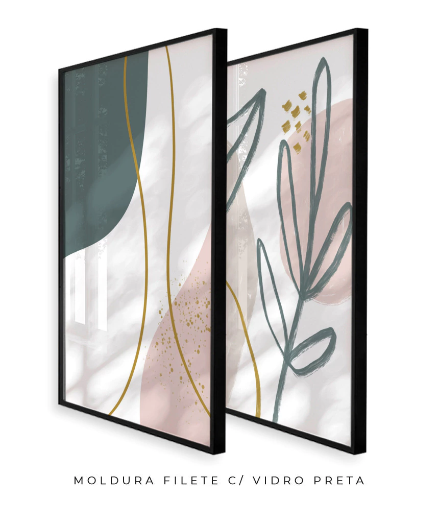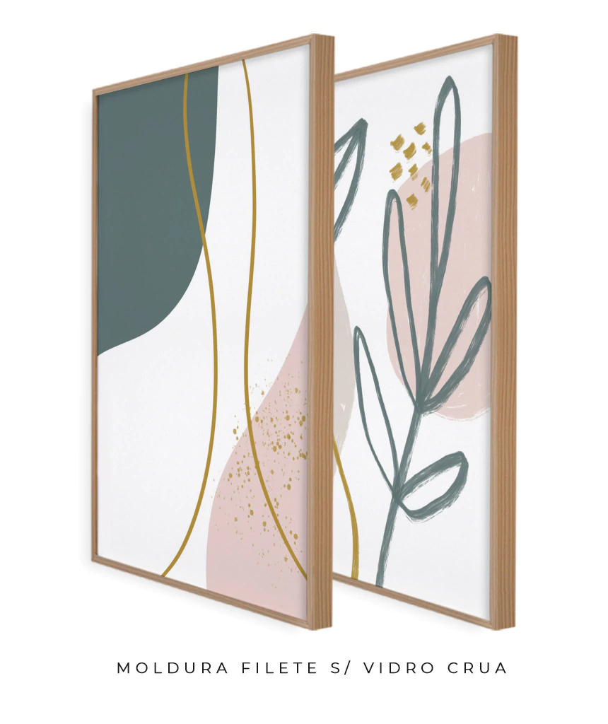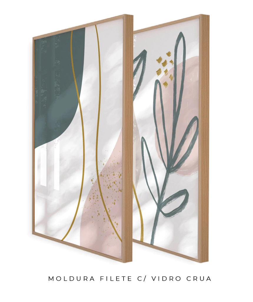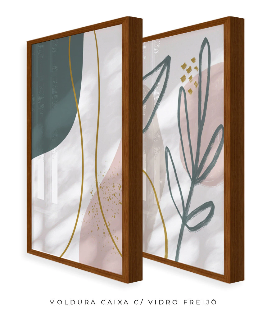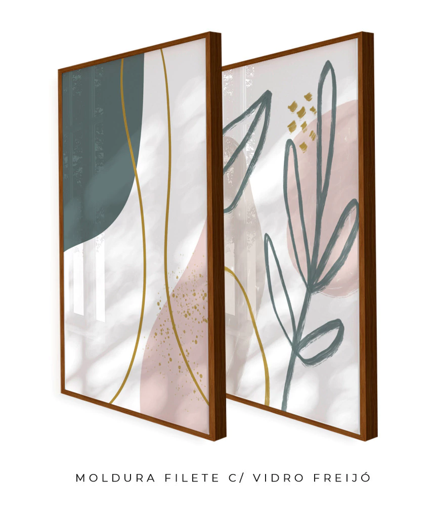 Conjunto com 2 Quadros Decorativos - Nuances Spring 03 + Folhagem Boho | Arte Autoral Por Rachel Moya | Art Studio®