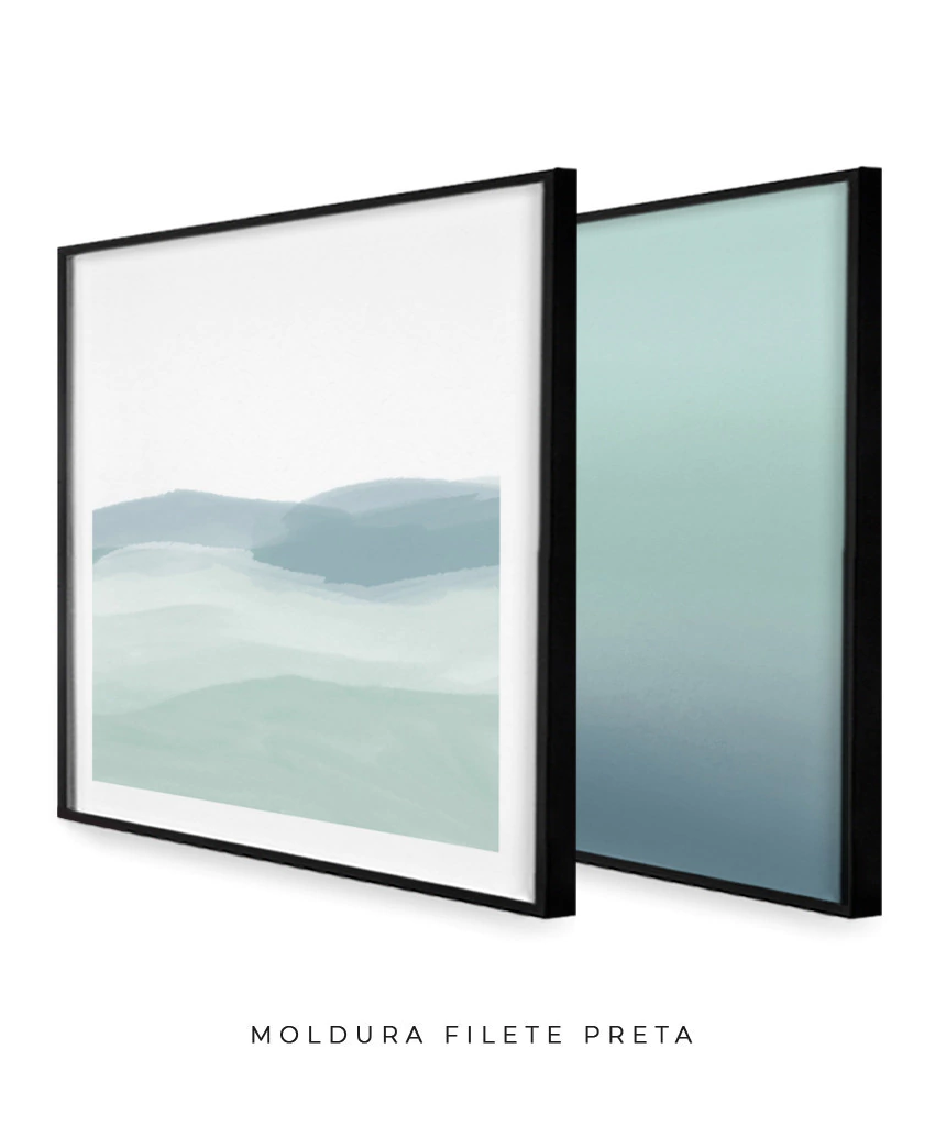 Conjunto com 2 Quadros Decorativos - Pinceladas Aquareladas Quadrado + Degradê Azul e Verde Claro Quadrado | Arte Autoral Por Rachel Moya | Art Studio®
