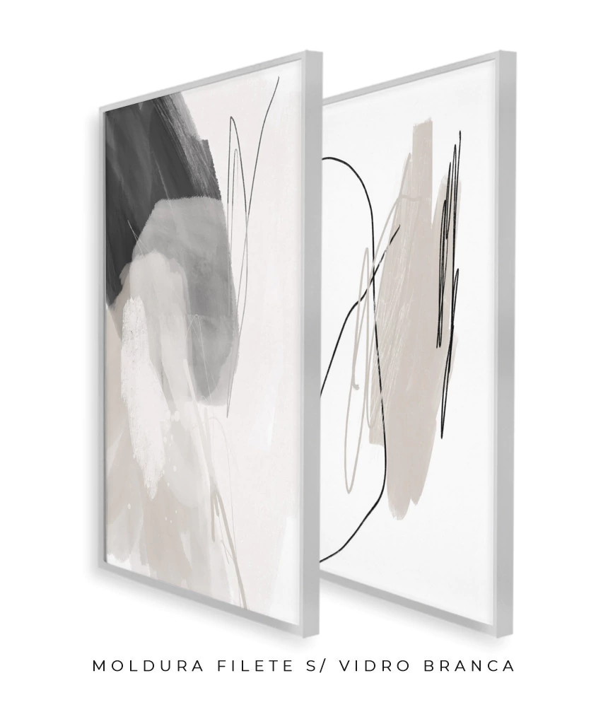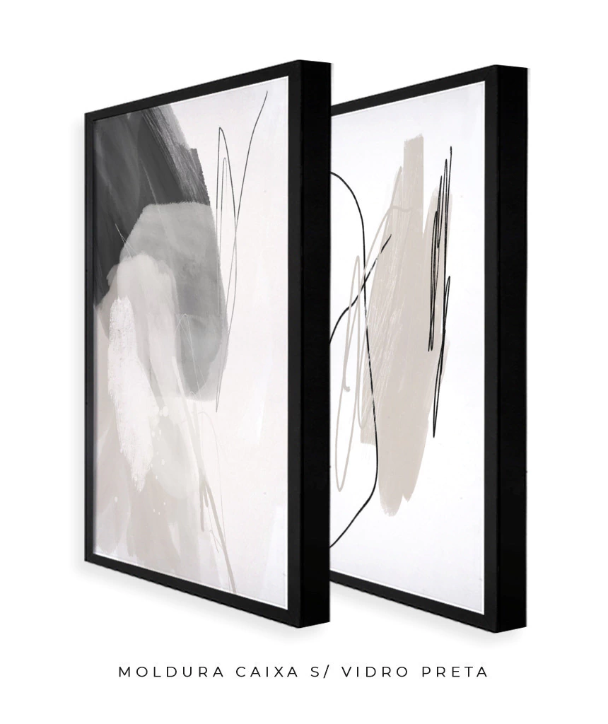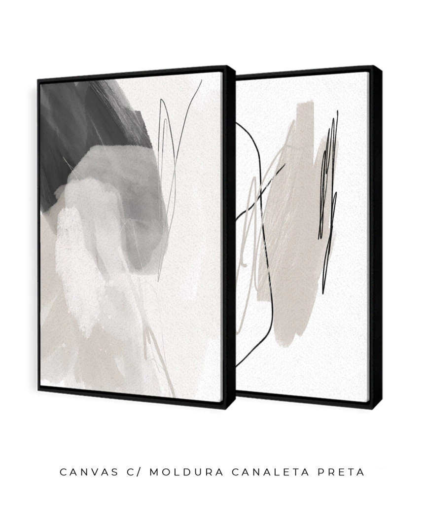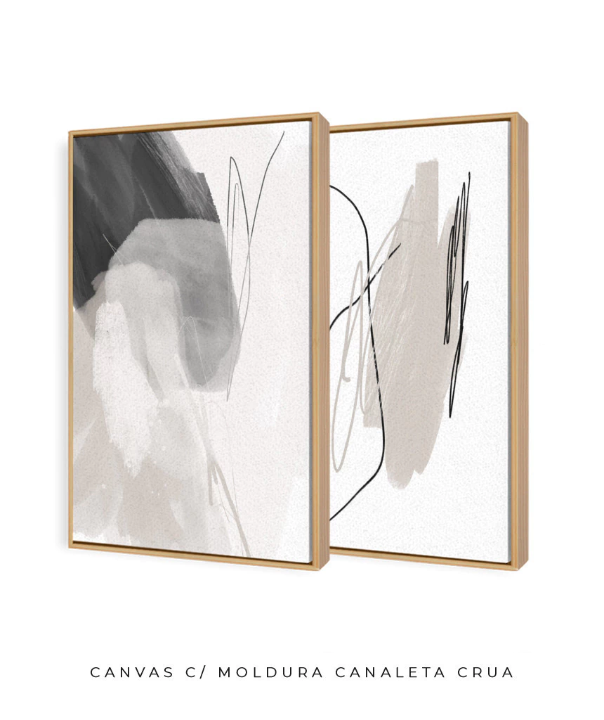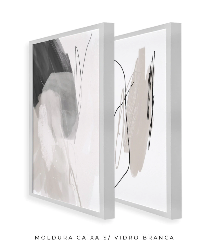 Conjunto com 2 Quadros Decorativos - Rock Stones Minimal 01 + Neutral Lines and Strokes | Arte Autoral Por Rachel Moya | Art Studio®
