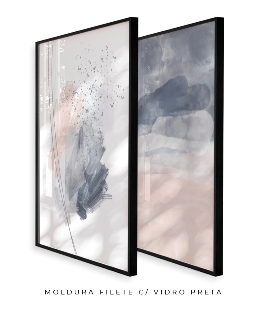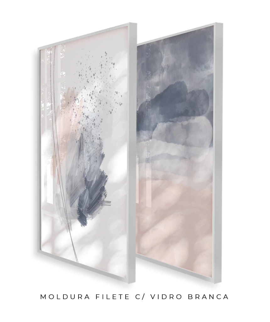 Conjunto com 2 Quadros Decorativos - Rose Strokes + Rose and Blue Ocean | Arte Autoral Por Rachel Moya | Art Studio®