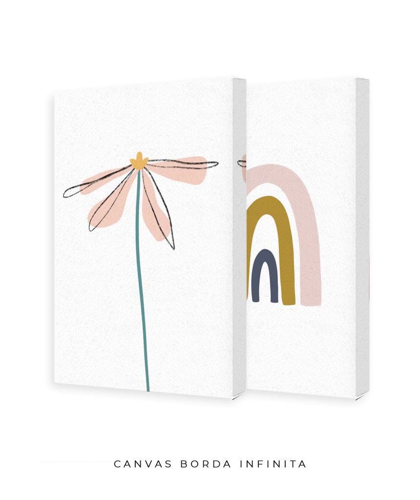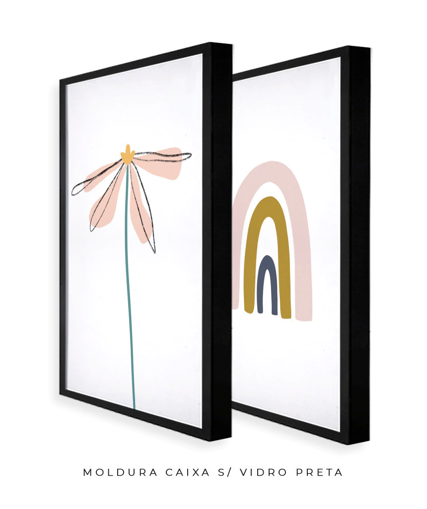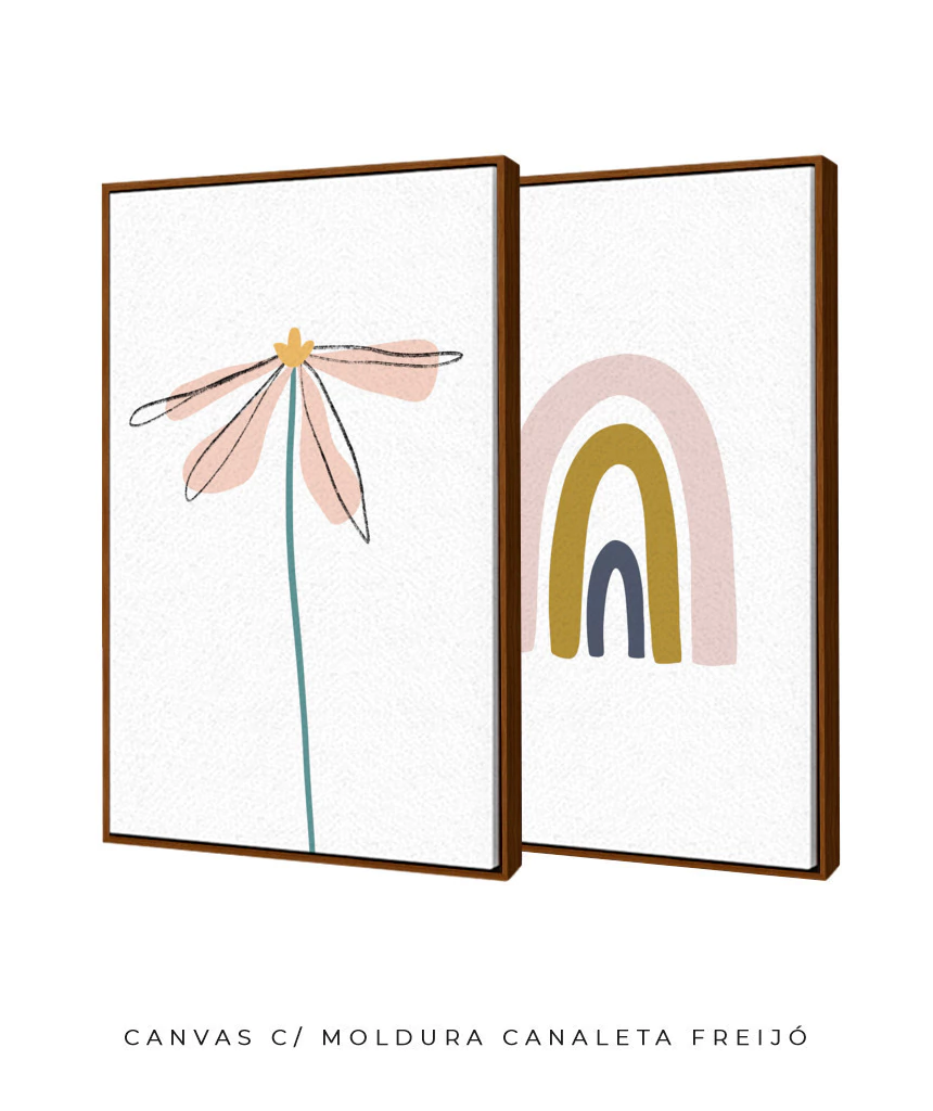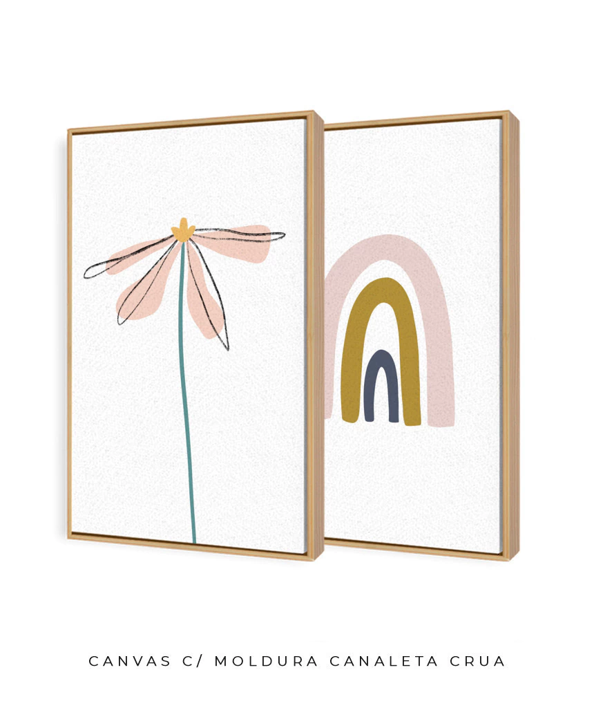 Conjunto com 2 Quadros Decorativos - Simple Flower + Boho Rainbow | Arte Autoral Por Rachel Moya | Art Studio®