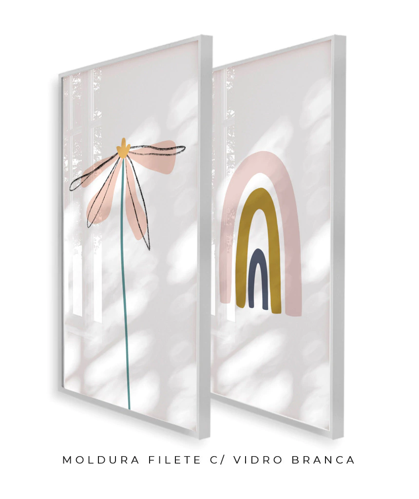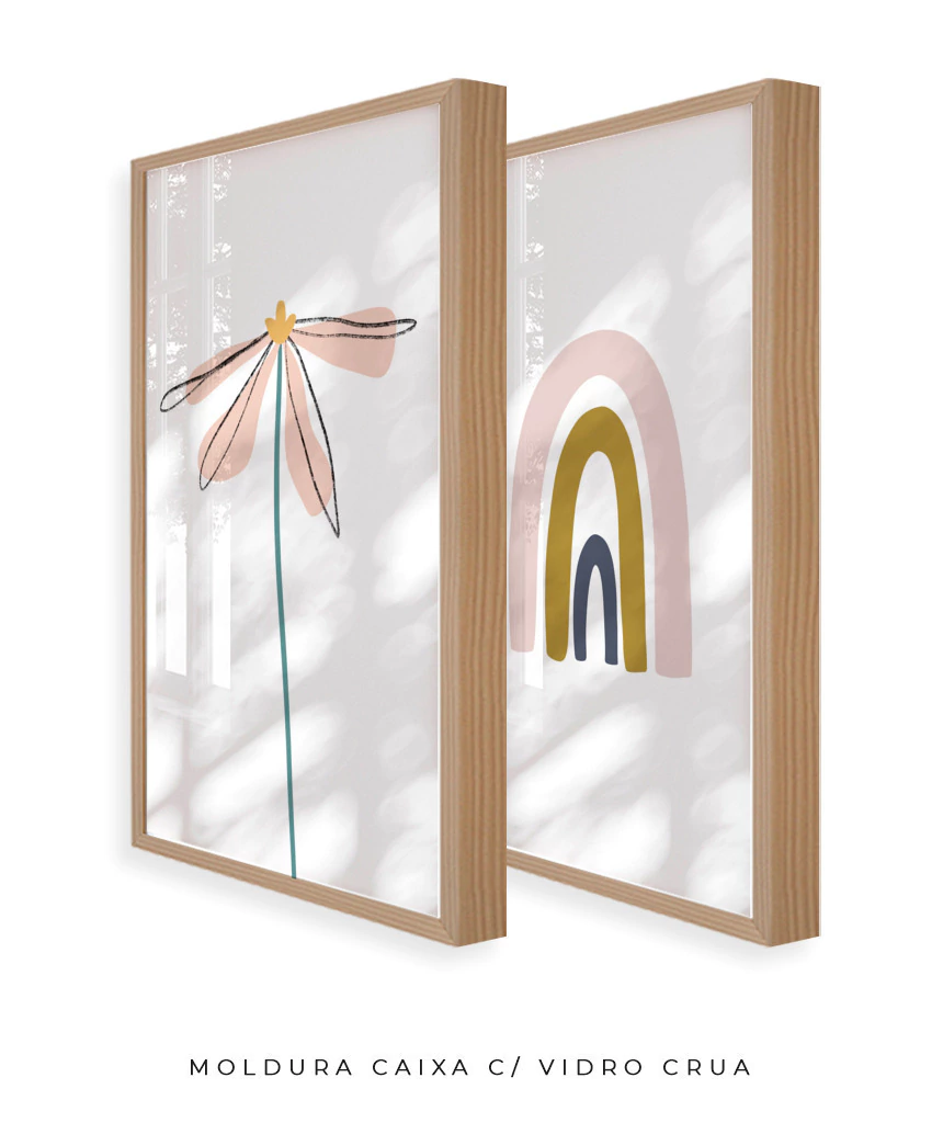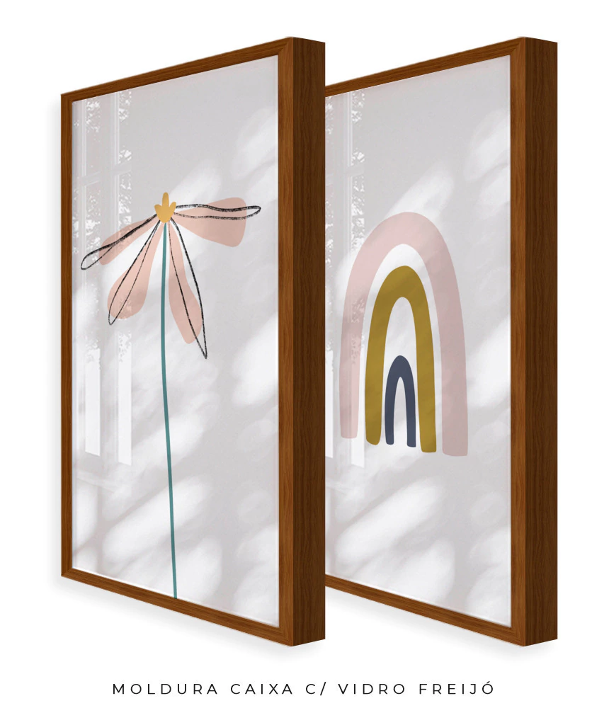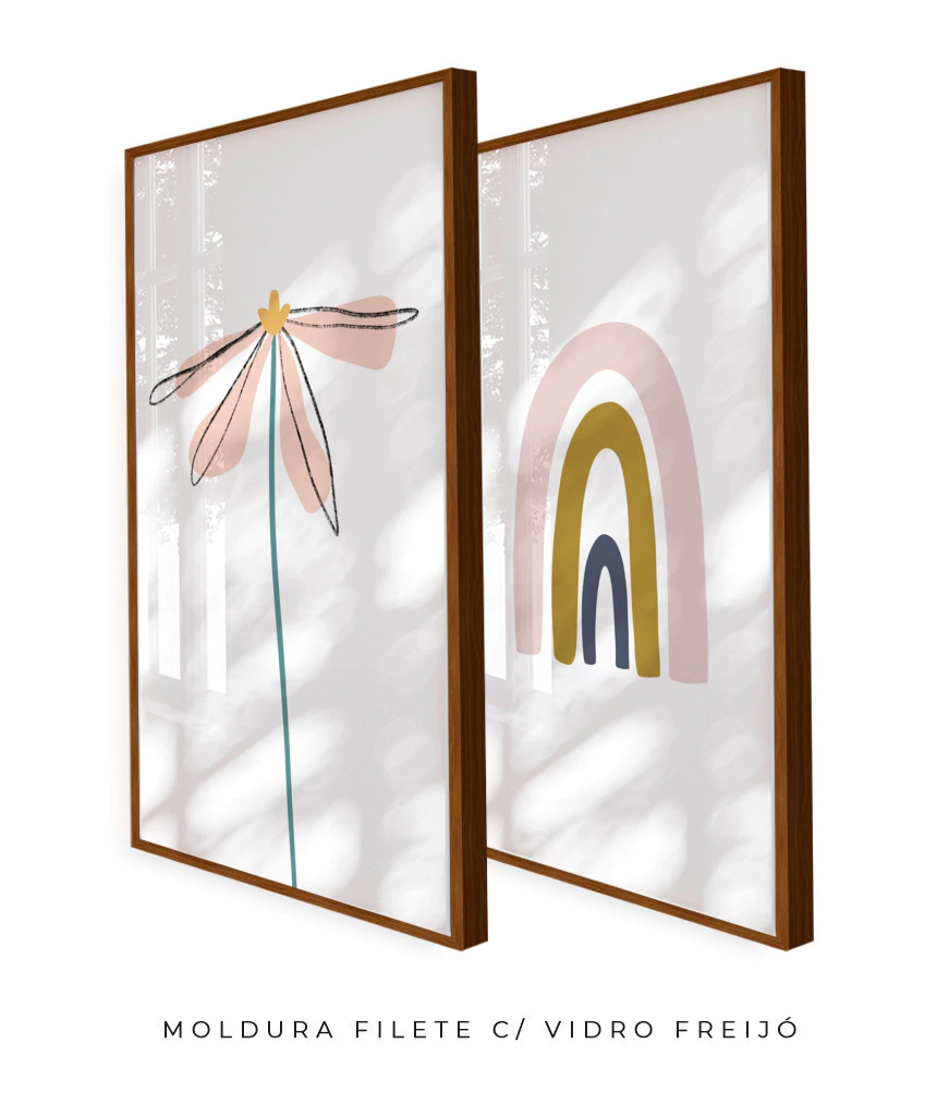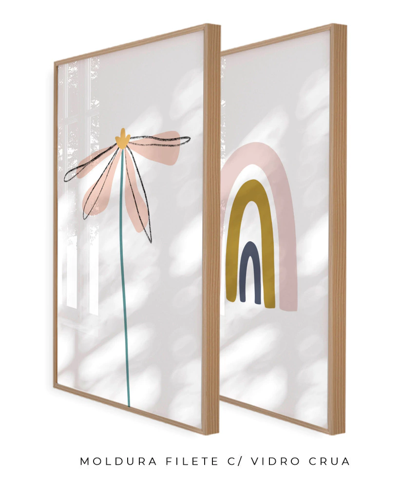 Conjunto com 2 Quadros Decorativos - Simple Flower + Boho Rainbow | Arte Autoral Por Rachel Moya | Art Studio®