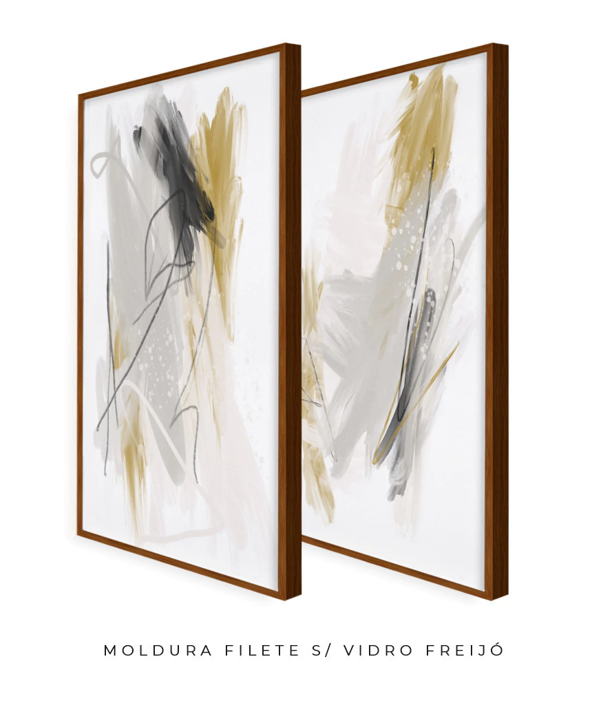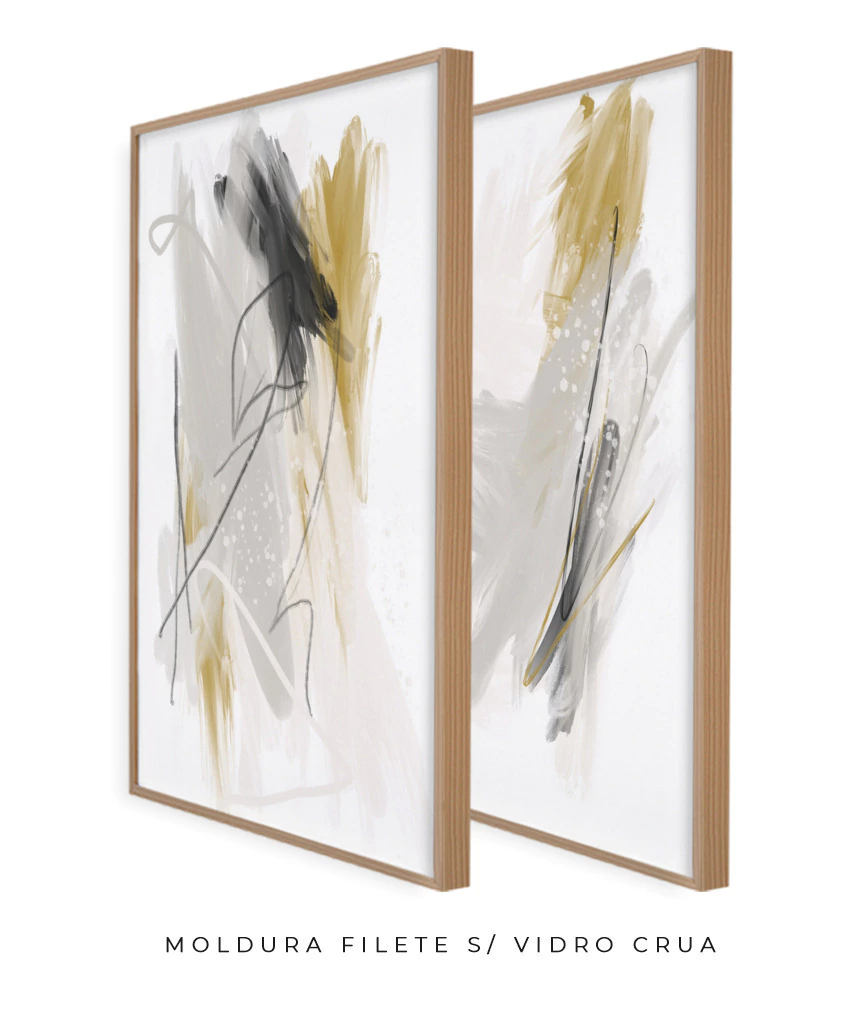 Conjunto com 2 Quadros Decorativos - Soft Minimal Strokes 01 + Soft Minimal Strokes 02 | Arte Autoral Por Rachel Moya | Art Studio®