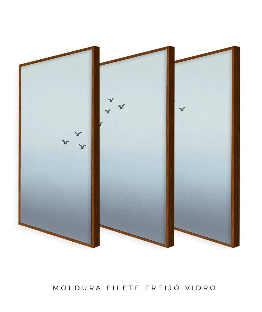 Conjunto com 3 Quadros Decorativos - Gaivotas N.01 + Gaivotas N.02 + Gaivotas N.03 | Arte Autoral Por Rachel Moya | Art Studio®