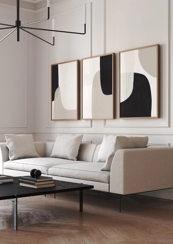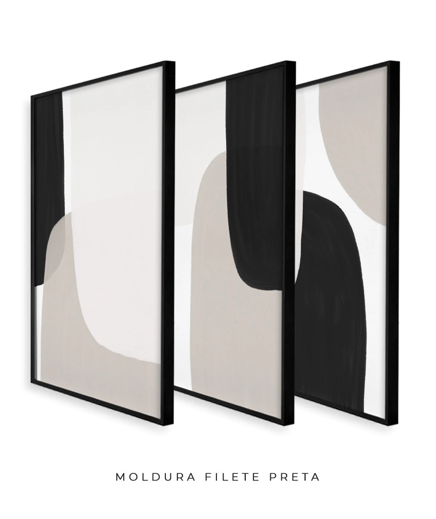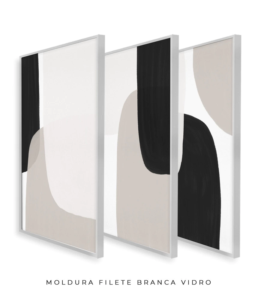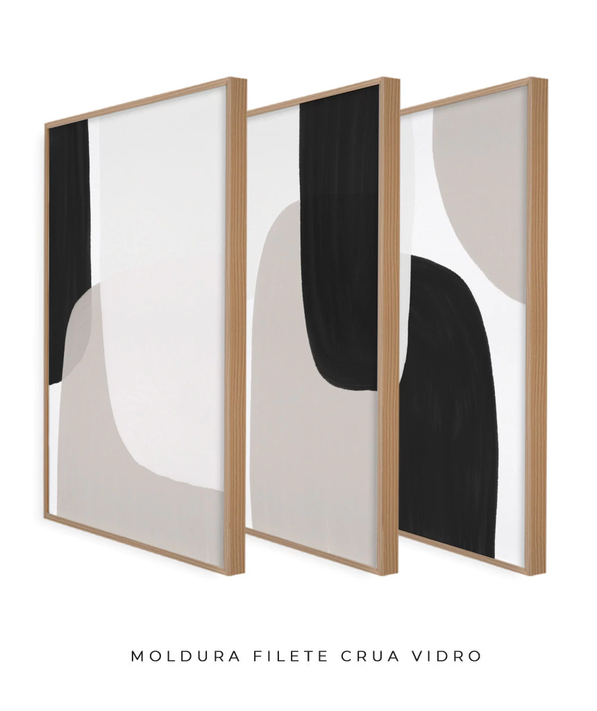 Conjunto com 3 Quadros Decorativos - Modern Shapes Neutral 01 + Modern Shapes Neutral 02 + Modern Shapes Neutral 03 | Arte Autoral Por Rachel Moya | Art Studio®