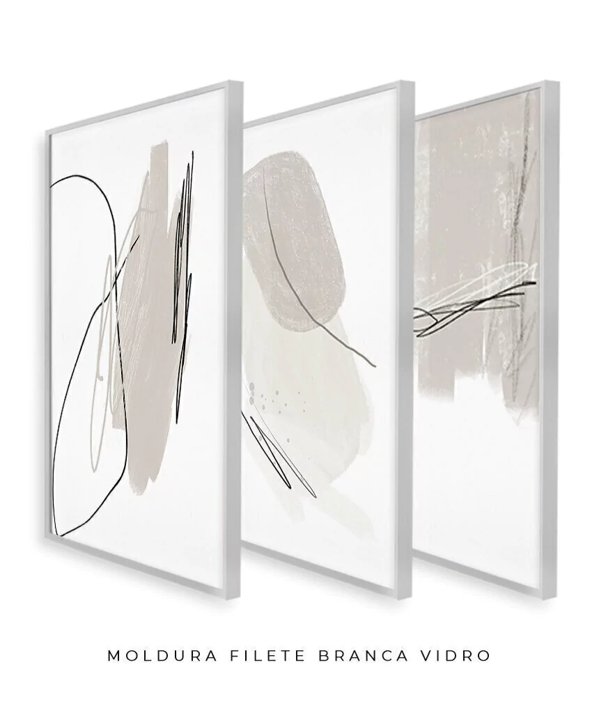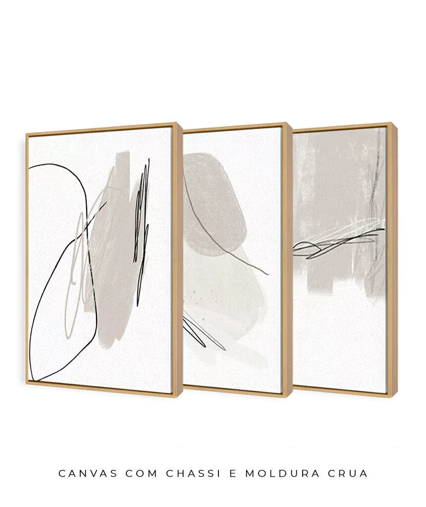 Conjunto com 3 Quadros Decorativos - Neutral Lines and Strokes + Stones Composition + Unity Neutral | Arte Autoral Por Rachel Moya | Art Studio®