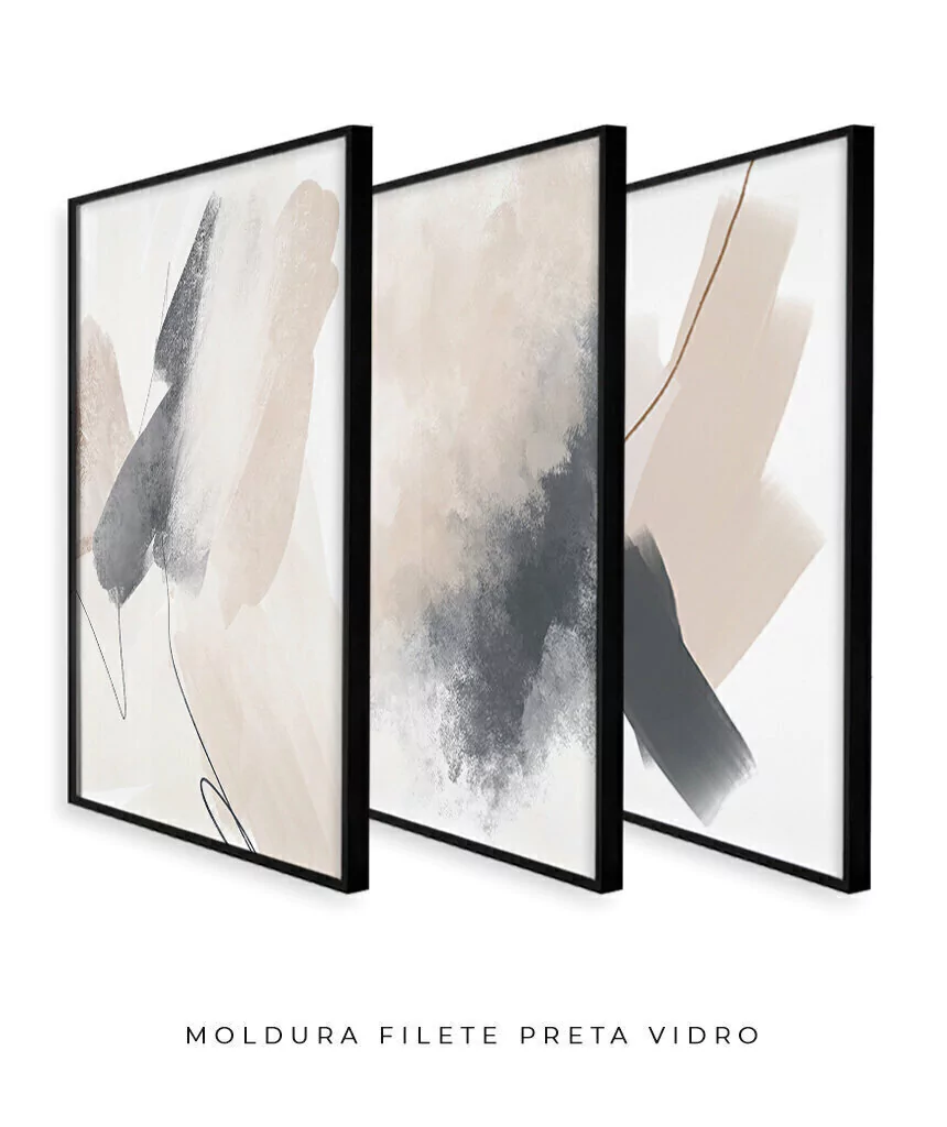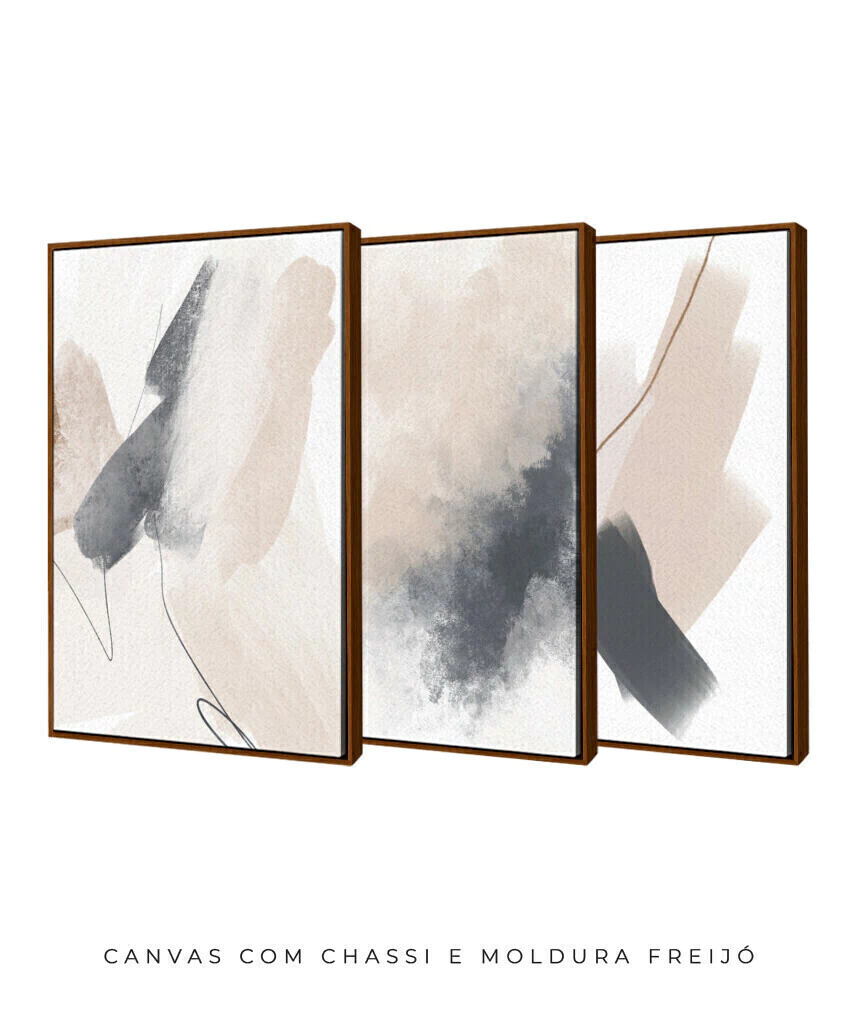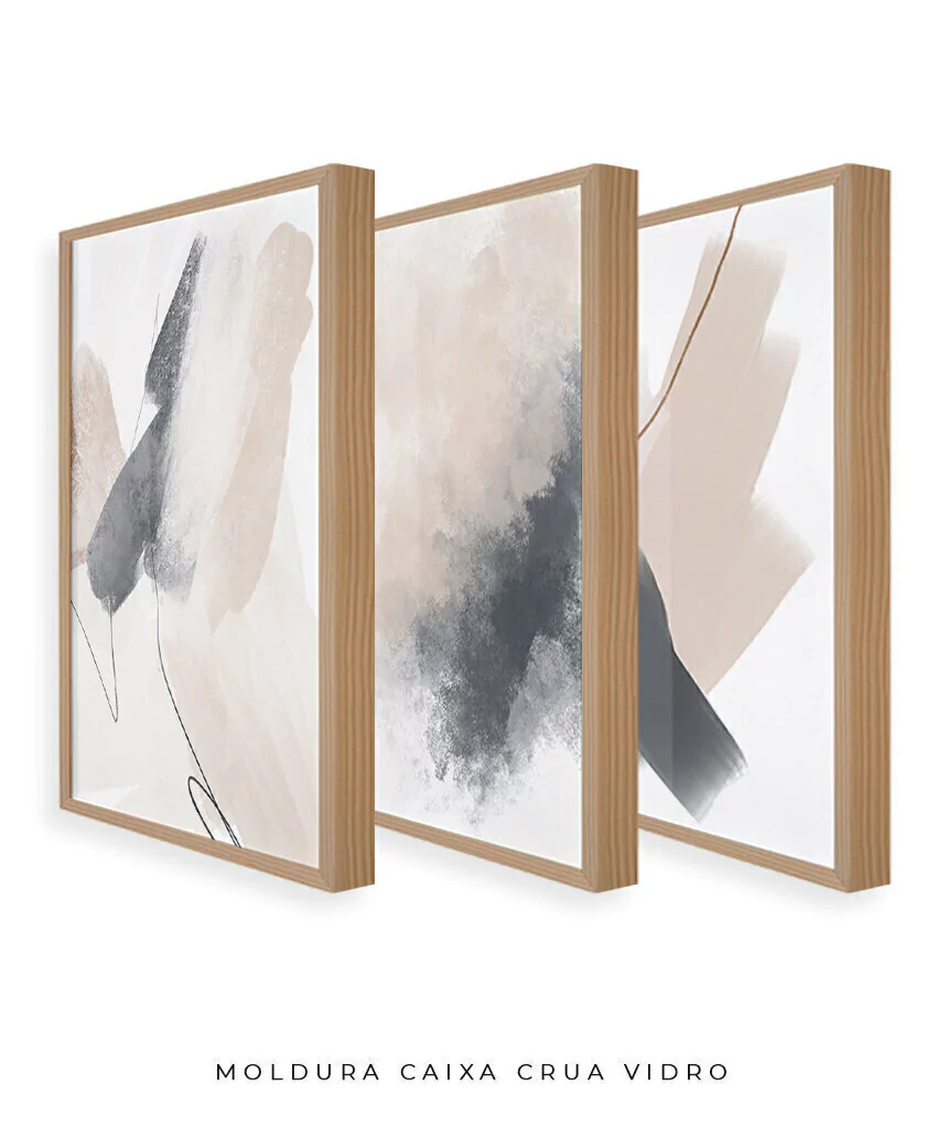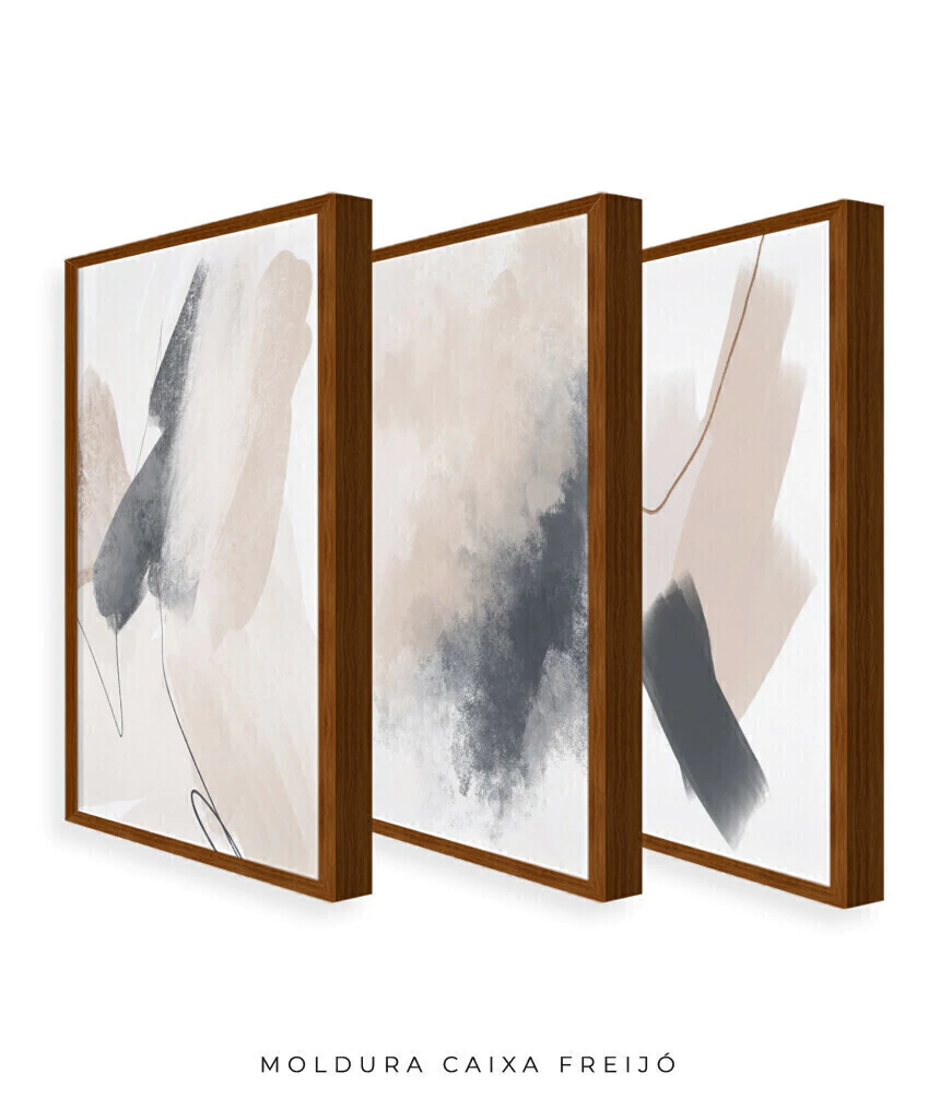 Conjunto com 3 Quadros Decorativos - Overland N.03 + Navy and Beige Mist N.01 + Overland Strokes | Arte Autoral Por Rachel Moya | Art Studio®