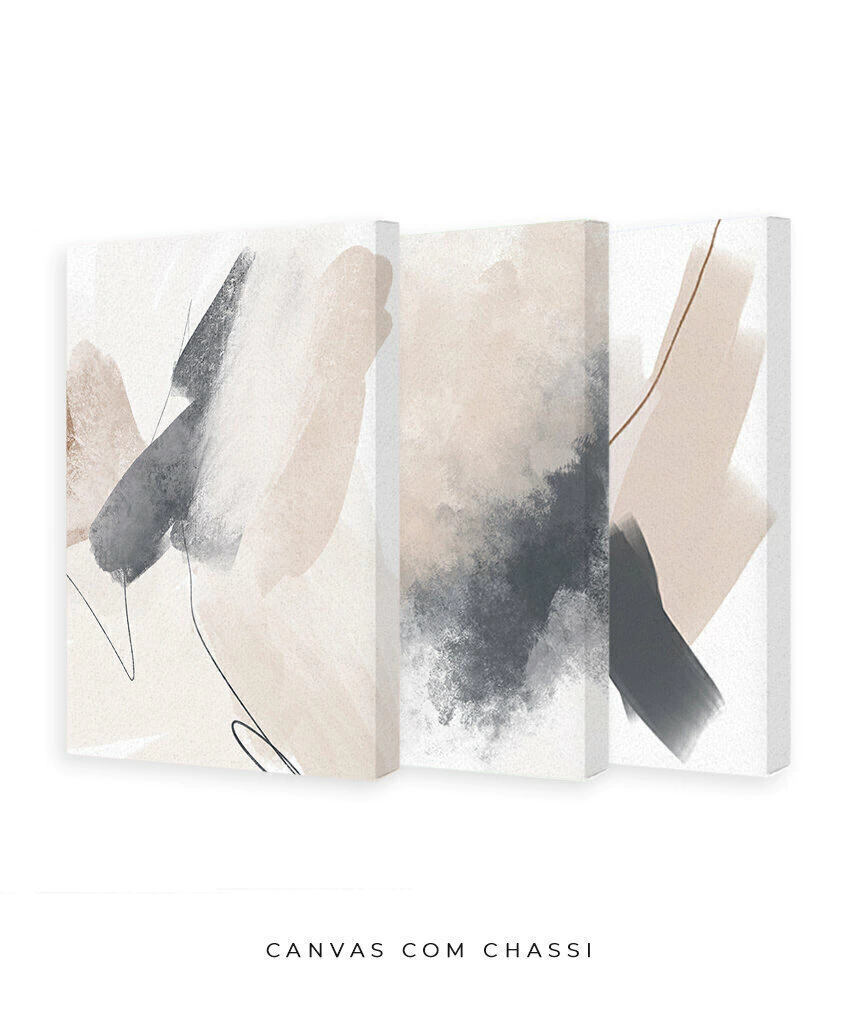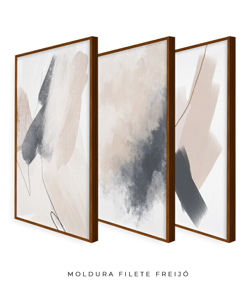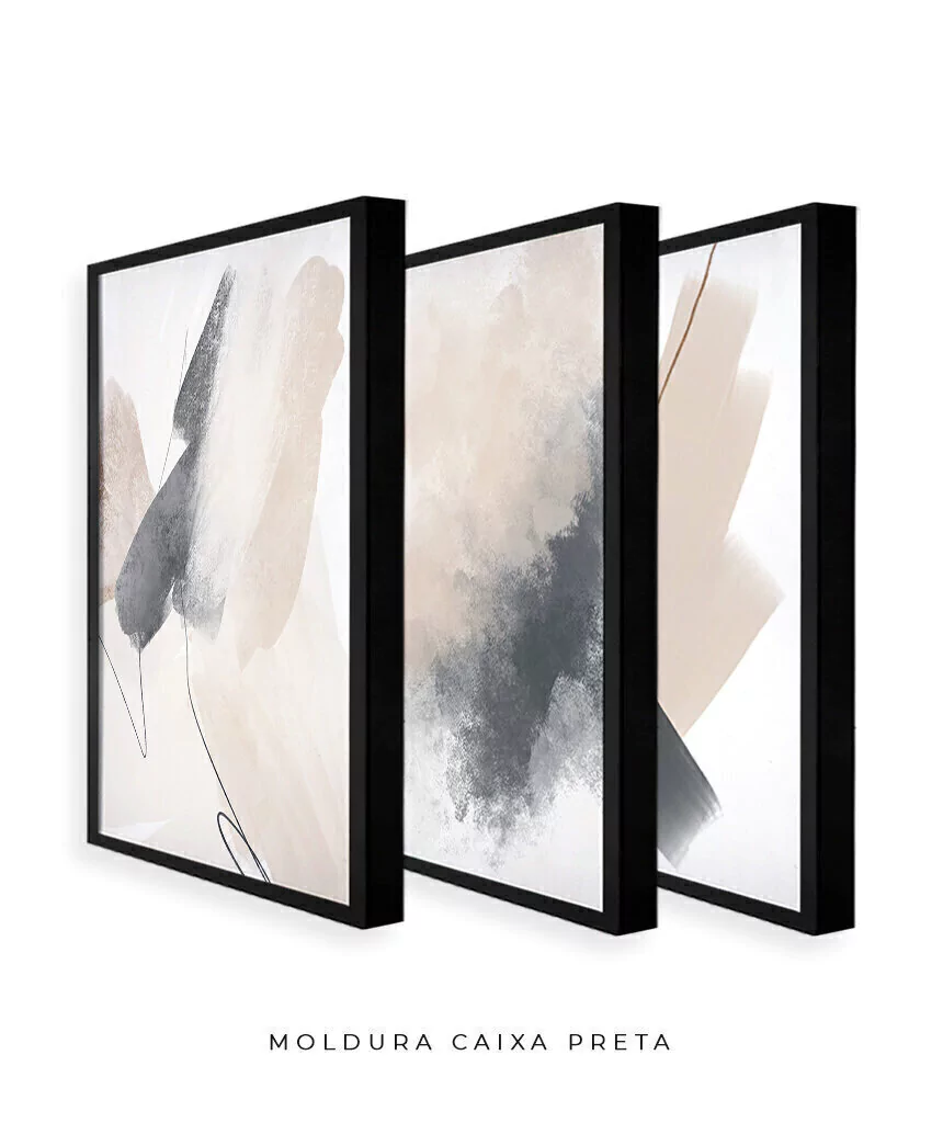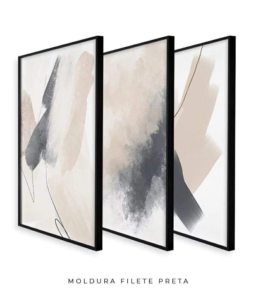Conjunto com 3 Quadros Decorativos - Overland N.03 + Navy and Beige Mist N.01 + Overland Strokes | Arte Autoral Por Rachel Moya | Art Studio®