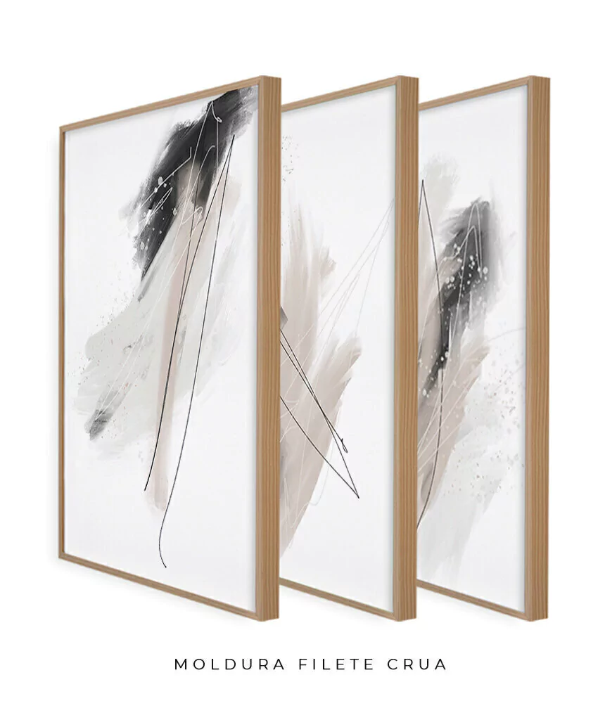 Conjunto com 3 Quadros Decorativos - Soft Minimal Gray Strokes 01 + Soft Minimal Gray Strokes 03 + Soft Minimal Gray Strokes 02 | Arte Autoral Por Rachel Moya | Art Studio®