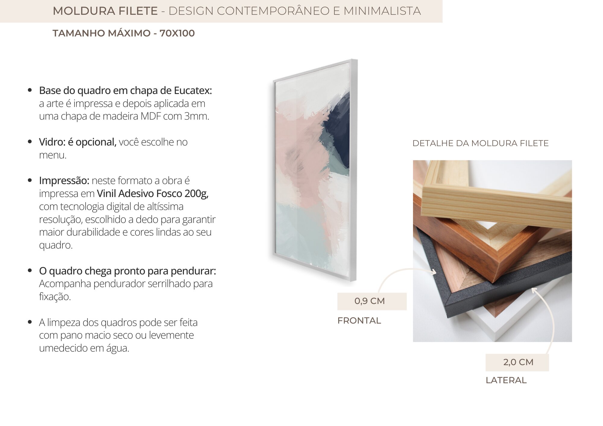 - O tamanho indicado é referente a cada quadro (unidade) mesmo em conjuntos;